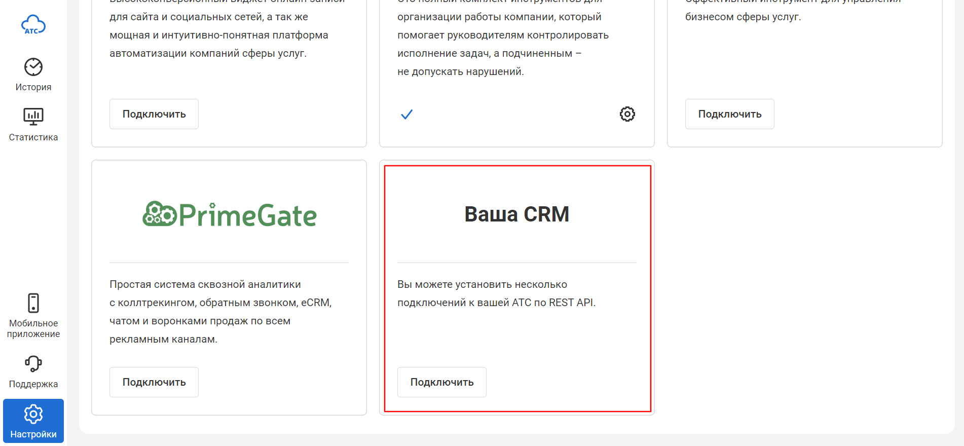 ШАГ № 1.3. На данной вкладке нужно нажать «Интеграция с вашей CRM»