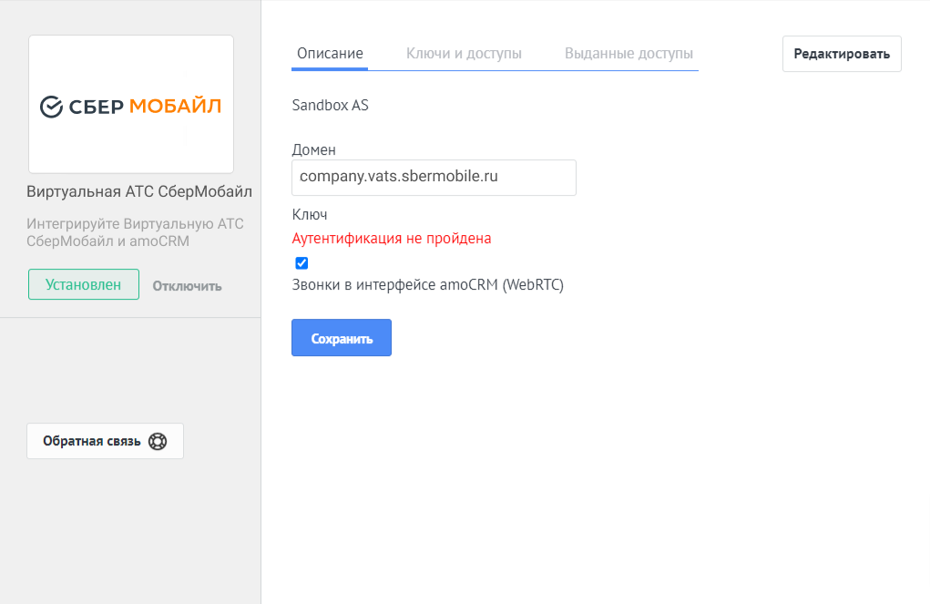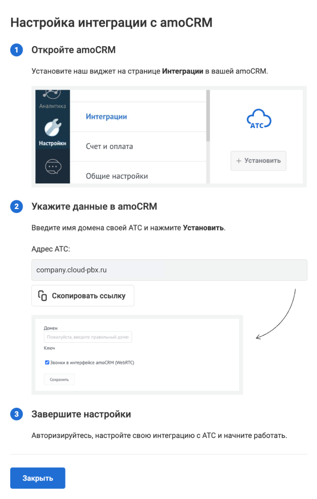 Инструкция по интеграции Виртуальной АТС и amoCRM