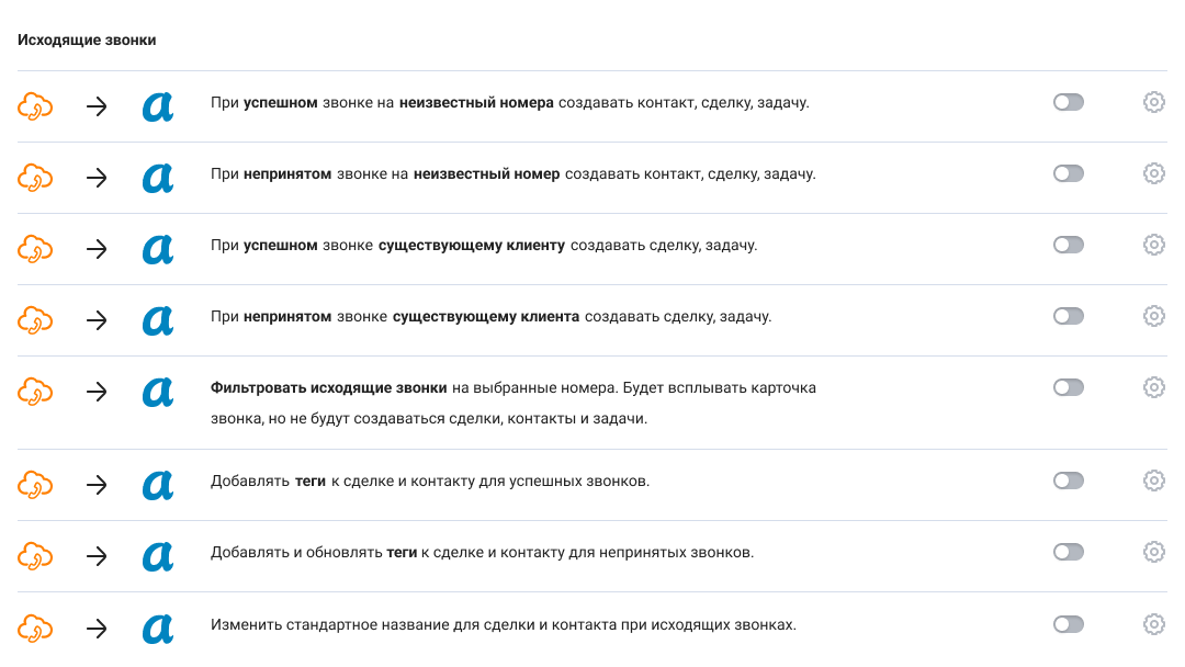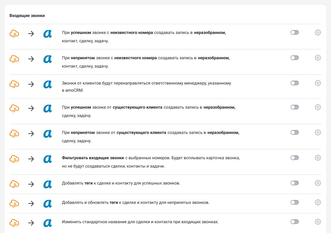 При этом для каждого типа звонка могут действовать свои правила интеграции.