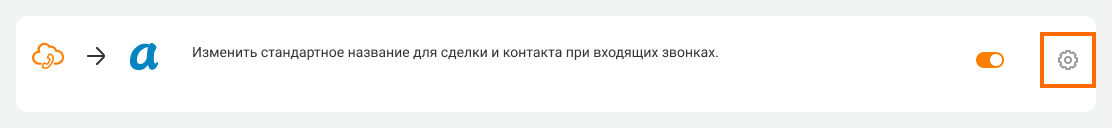 Если нужно будет изменить шаблон названия для сделки и контакта, нажмите на шестеренку в выбранном сценарии интеграции.