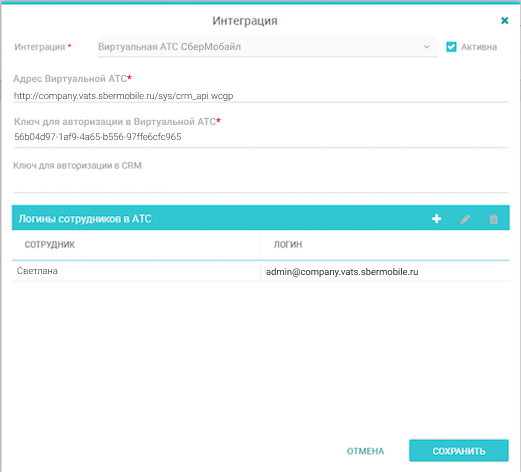 При любых изменениях в списке сотрудников, имеющих доступ к IP-телефонии, необходимо производить соответствующие изменения в настройках интеграции.
