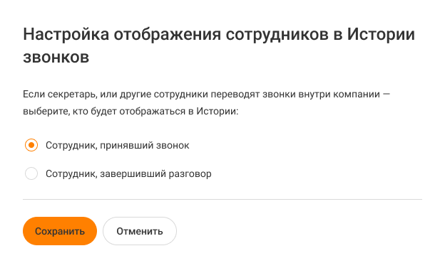 В открывшемся окне выберите вариант отображения «Сотрудник, принявший звонок» и нажмите «Сохранить».