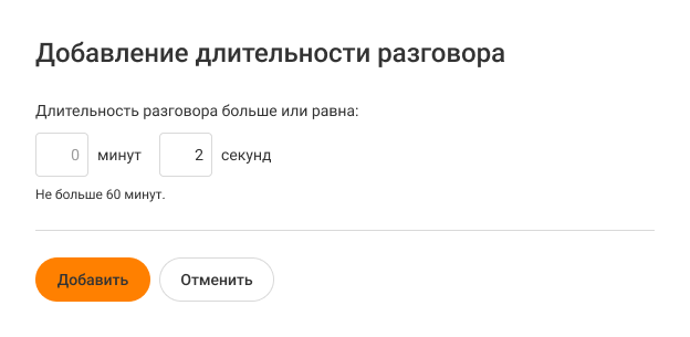 При настройке фильтра можно выбрать стандартные значения или добавить свои. Для последнего в выпадающем списке фильтра «Длительность разговора» нажмите «Добавить длительность».