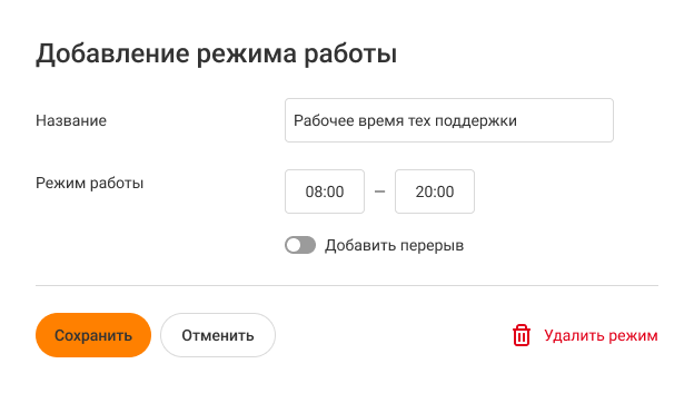 Чтобы создать свой режим работы, нажмите на кнопку «Добавить режим».