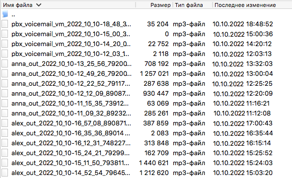 Внутри папок файлы записи имеют имена вида anna_out_2022_10_10-12_49_26_79260024015.mp3, где: