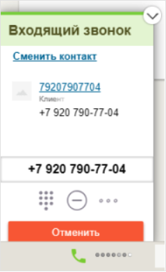 1. Всплывающая карточка клиента при входящем звонке