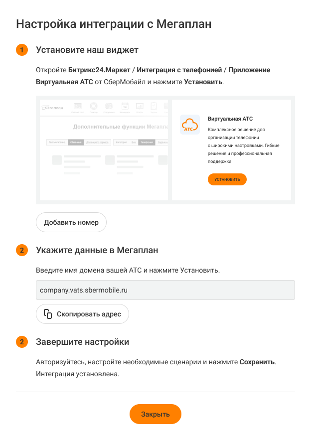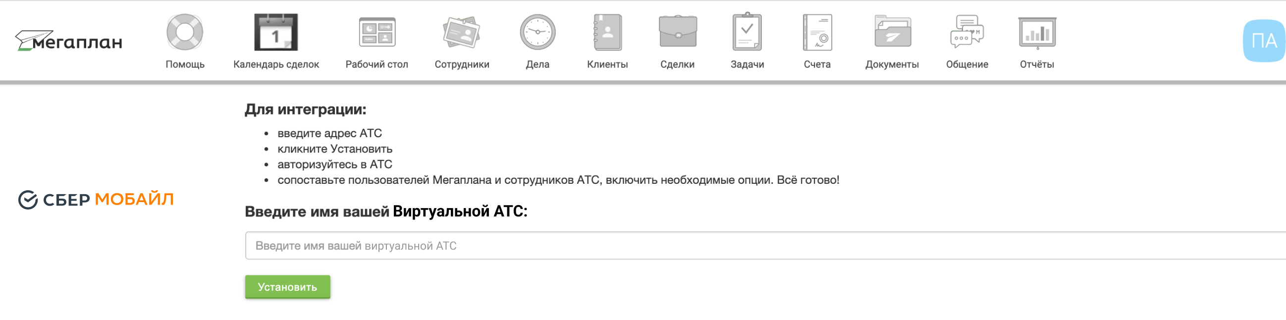 Инструкция по интеграции Мегаплан и Виртуальной АТС