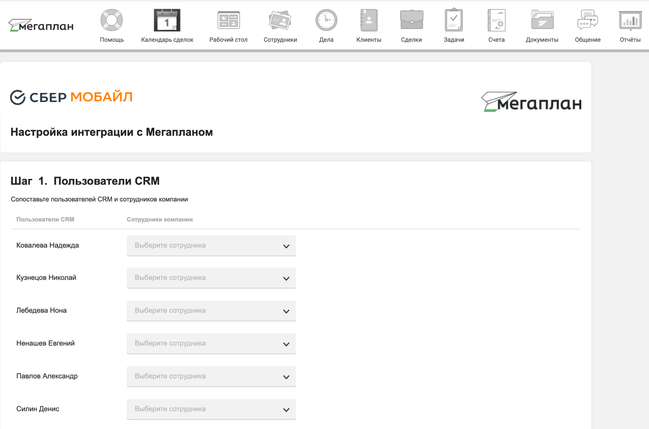 После успешной авторизации сопоставьте пользователей Мегаплана и сотрудников в ВАТС.