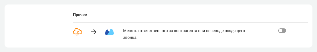 Кроме того, вы можете включить автоматическую смену ответственного за контрагента при переводе входящего звонка в разделе «Прочее».