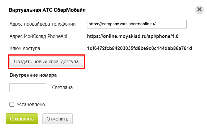 6. Вернитесь в интерфейс Виртуальной АТС и в поле «Ключ доступа» вставьте скопированный ключ.