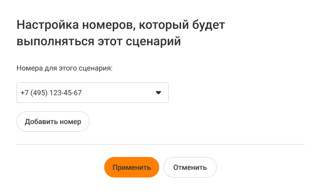 - Как изменять список номеров в сценариях интеграции, чтобы настраивать для выбранных номеров сценарии интеграции, отличающиеся от основного сценария.