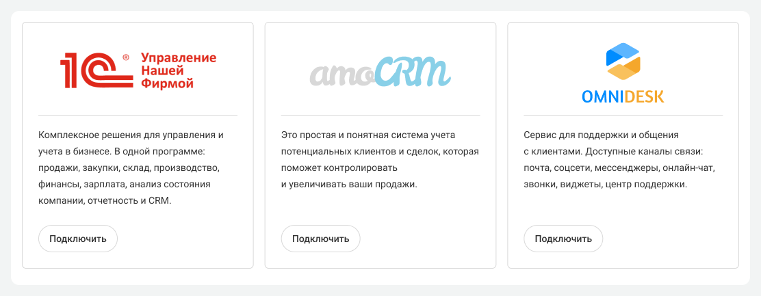 После этого в настройках интеграции статус изменится на «Подключено» — появится синяя галочка в левом нижнем углу.