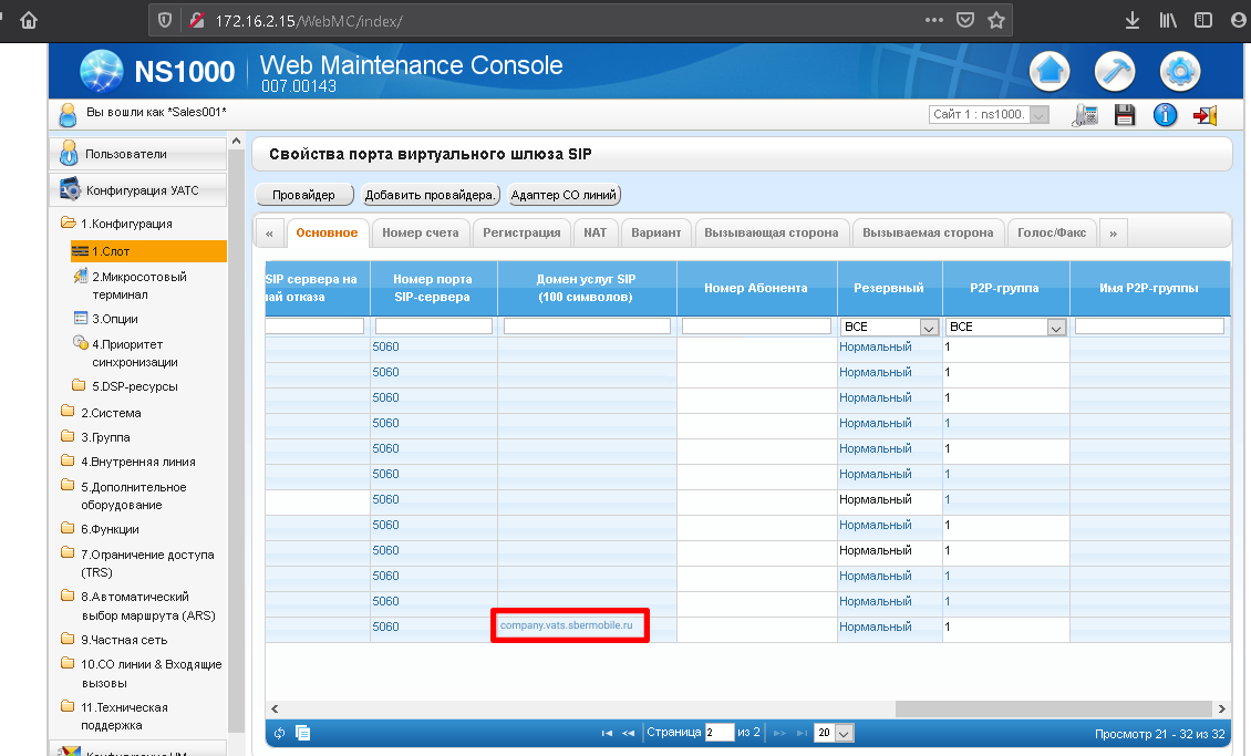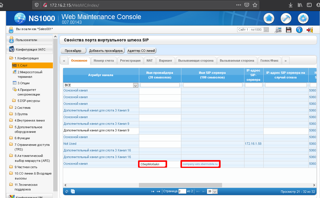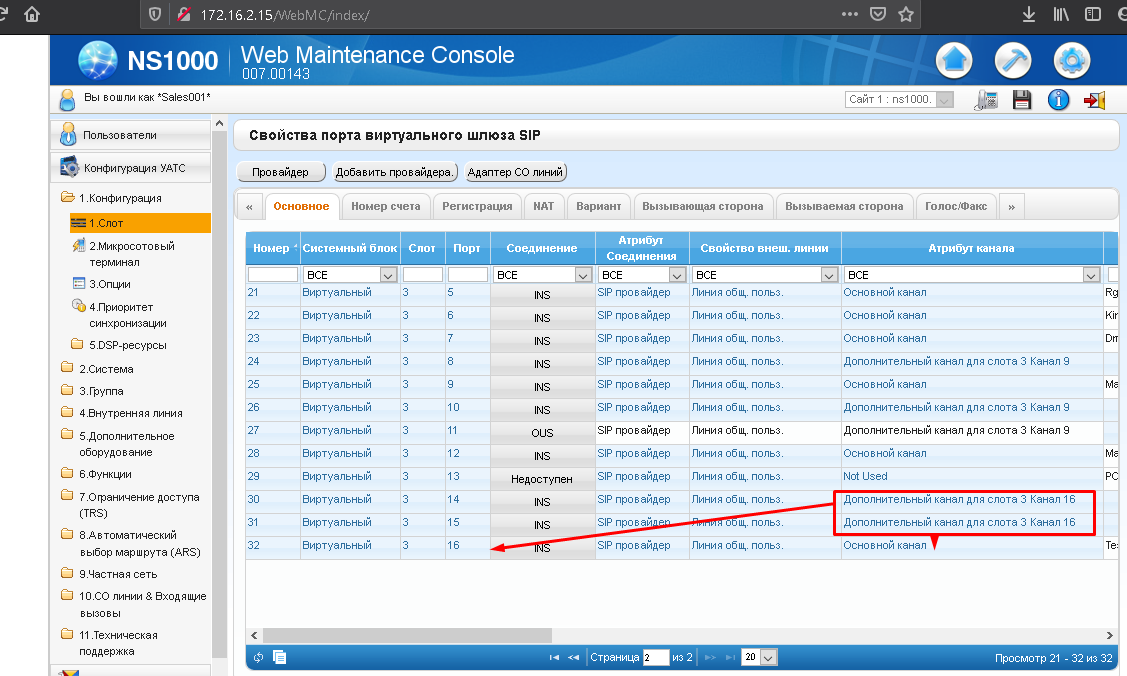 В боковом меню выберите «Конфигурация УАТС» → «Конфигурация» → «Слот». Вам откроется таблица во вкладке «Основное». В столбце «Атрибут канала» выставите Основной канал.