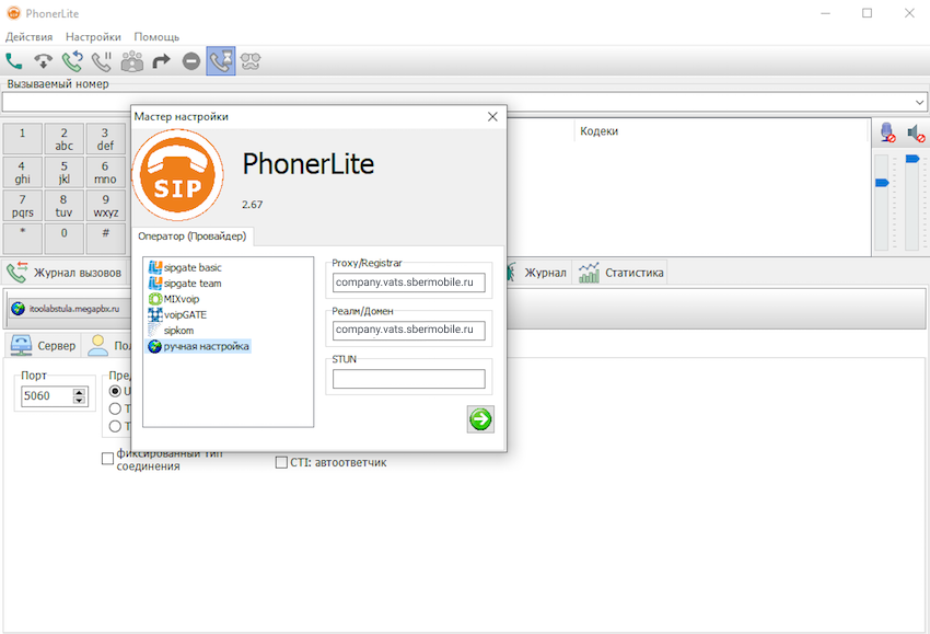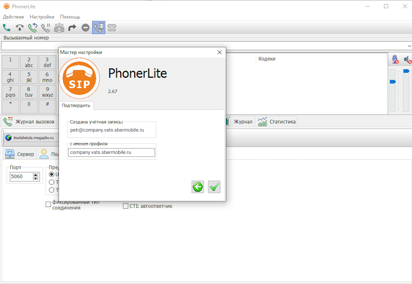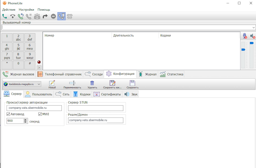 4. Регистрация прошла успешно, софтфон может принимать и совершать вызовы.