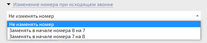 В случае необходимости изменения номера при исходящем звонке выберите, каким именно образом он должен меняться.