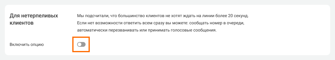 2. В самом низу в настройках найдите и включите опцию «Для нетерпеливых клиентов».