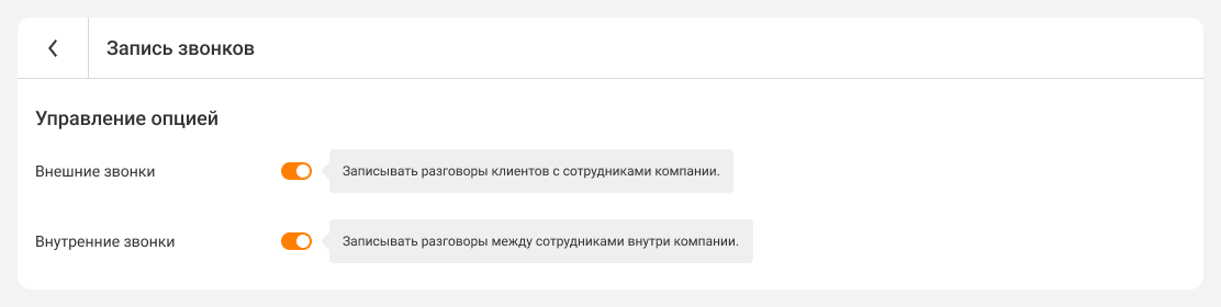 Вы можете временно отключить запись звонков, если это требуется для особенного случая. Обратите внимание, что выключение записи в этом разделе не останавливает тарификацию, а позволяет лишь на время выключить её. Если вы хотите отключить запись насовсем, отключите её в разделе «Тариф».