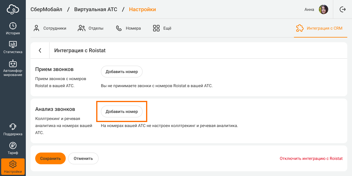 Если вы подключили номера в Roistat, свяжите их с номерами Виртуальной АТС. Вы сможете анализировать звонки с номеров Roistat в Истории и Статистике ВАТС, а за переадресацию таких звонков на ваши мобильные телефоны платить не придется.