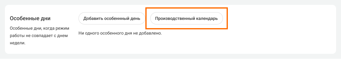 1. В настройках расписания номера перейдите к разделу «Особенные дни» и нажмите на кнопку «Производственный календарь».