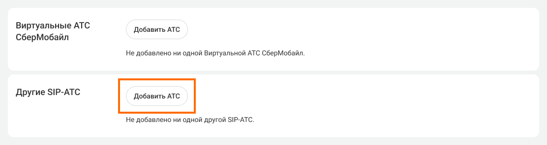 2. Рядом с вариантом подключения «Другие SIP-АТС» нажмите «Добавить АТС».