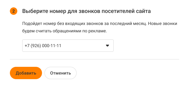 6. Выберите номер, звонки на который будут считаться переходами с выбранных рекламных каналов.